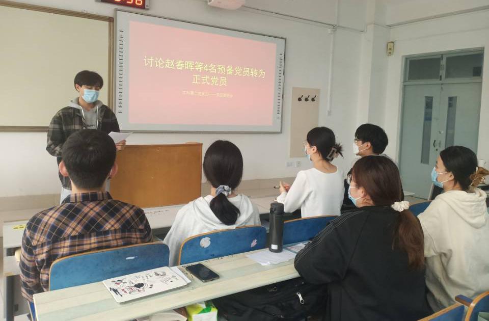 會議介紹了趙春暉兩位同志的基本情況,支委會成員互相討論并各自發(fā)表了意見。支委會成員從思想認(rèn)識、政治素養(yǎng)等方面對擬接收的正式黨員進(jìn)行了全面審查。經(jīng)支委會成員充分討論后,一致同意擬于3月3日召開的本科第二黨支部黨員大會的決定,討論了接收趙春暉等四位同志為中共正式黨員的事宜。同時,會議部署了接收四位同志為中共正式黨員的投票工作。