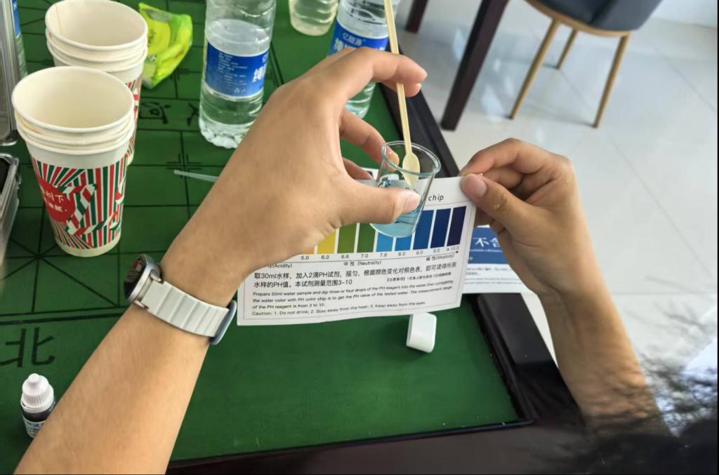 “調(diào)研是基礎(chǔ),應(yīng)用是關(guān)鍵”。團(tuán)隊(duì)成員收集各類用水樣本開展水質(zhì)分析。經(jīng)過系統(tǒng)梳理,團(tuán)隊(duì)結(jié)合專業(yè)知識(shí)撰寫水資源調(diào)研報(bào)告2萬余字,并正式提交至當(dāng)?shù)卣块T,為后續(xù)鄉(xiāng)村節(jié)水設(shè)施改造、水環(huán)境精準(zhǔn)治理提供重要的數(shù)據(jù)支撐和決策參考。