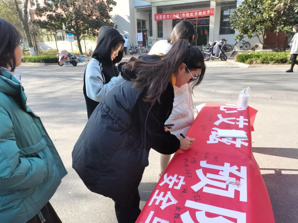 活動采取線上答題、線下簽名相結(jié)合的方式,通過完成網(wǎng)絡平臺上的相關(guān)問題來夯實學生艾滋病預防工作基礎,增強廣大青年學生的防病意識和自我保護能力。同時為進一步深化此次線上教育活動,學院青年志愿者協(xié)會為參加活動的同學們準備了“關(guān)心艾滋,預防艾滋”主題條幅,每位完成線上答題的同學都可在橫幅上進行簽名并留下寄語。隨著時間點點流逝,橫幅上的名字愈加增多,預防艾滋病的相關(guān)知識銘記于同學們心間,橫幅前也留下了同學們堅毅的身影。