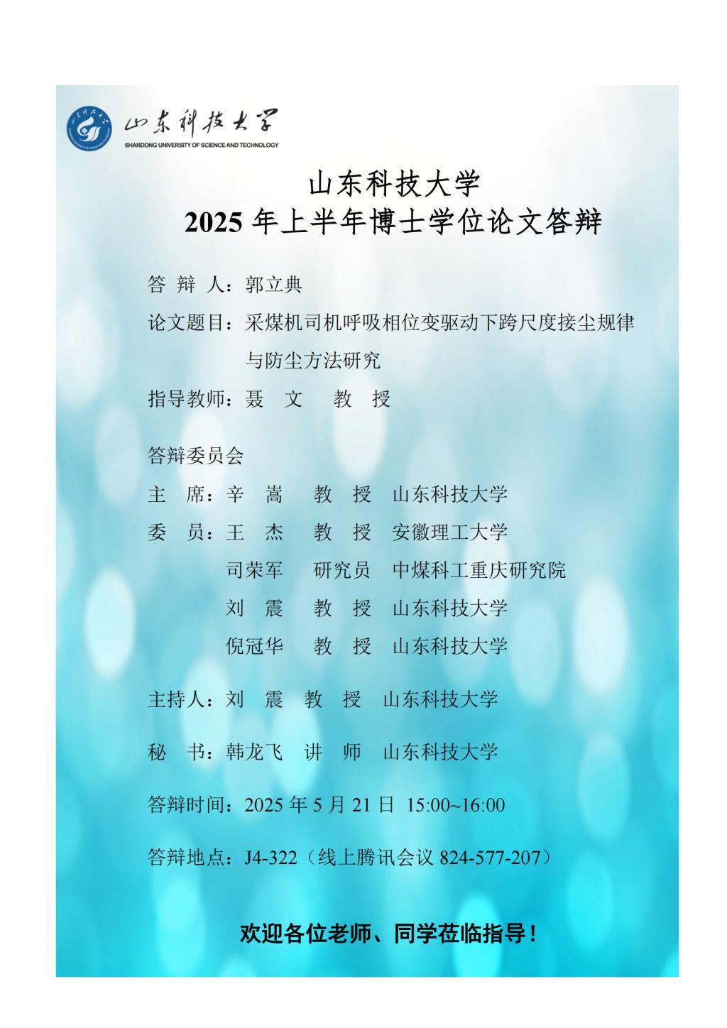 山東科技大學(xué)2025年上半年博士學(xué)位論文答辯