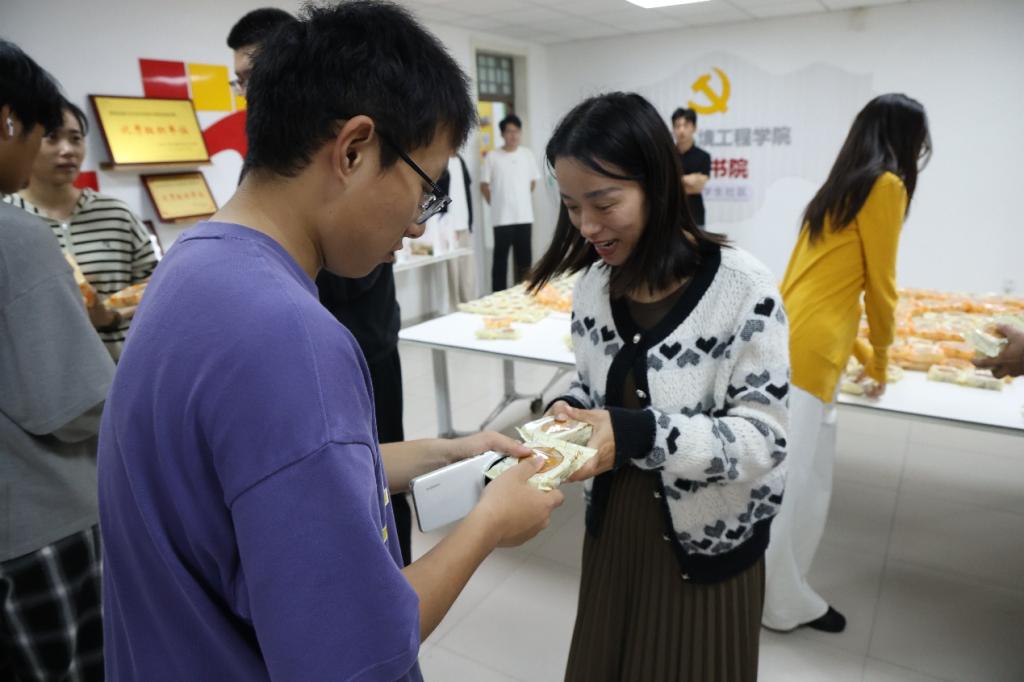 學(xué)院黨委書(shū)記張恩生,黨委副書(shū)記兼副院長(zhǎng)王建友,團(tuán)委書(shū)記張娜及全體輔導(dǎo)員一同走進(jìn)領(lǐng)才書(shū)院,親手將定制的月餅送到每一位新生手中。這份承載著學(xué)院深厚情誼的禮物,不僅傳遞著節(jié)日的祝福,更凝聚著師長(zhǎng)們對(duì)學(xué)子們的殷切關(guān)懷。