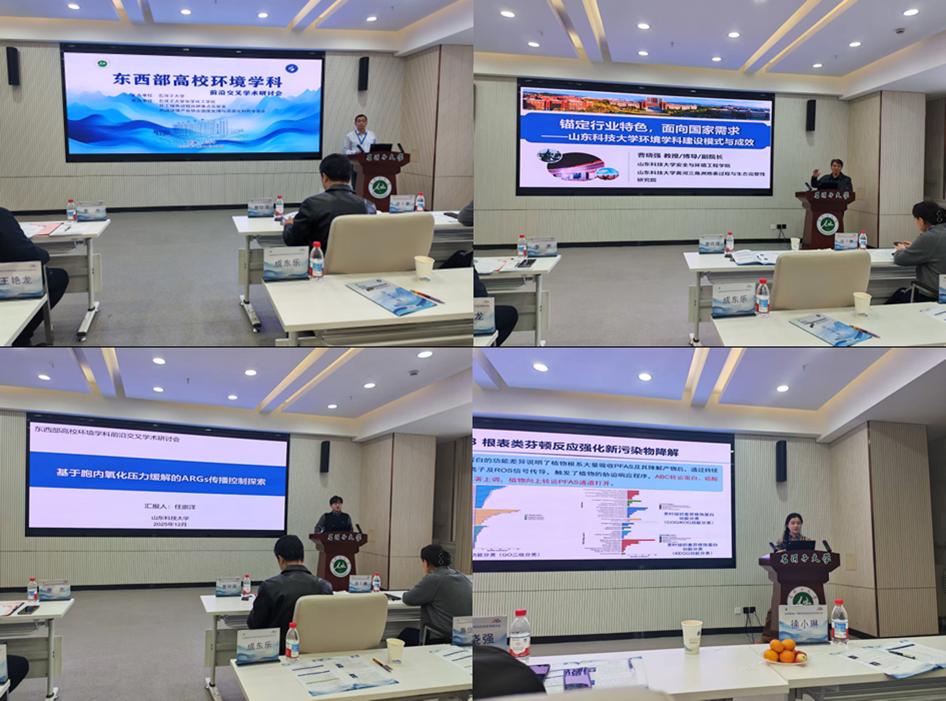 在學(xué)術(shù)研討環(huán)節(jié),曹曉強(qiáng)代表安全學(xué)院介紹了學(xué)院發(fā)展概況,并作了《山東科技大學(xué)環(huán)境學(xué)科建設(shè)模式與成效》的報(bào)告。隨后,任崇洋教授以《基于胞內(nèi)氧化壓力消減的ARGs傳播控制探索》為題分享了抗生素抗性基因防控的最新研究成果;成東樂教授聚焦有機(jī)固廢資源化,介紹了《從廢棄物到功能碳:有機(jī)固廢生物炭制備及高值應(yīng)用》;王艷龍副教授闡述了《鐵基微納米材料的宏量制備及其污染修復(fù)技術(shù)原理》;陳信含講師則圍繞《新污染物人工濕地植物生態(tài)凈化技術(shù)與應(yīng)用》展開論述。石河子大學(xué)王金玉、安雄芳、王儷儒等教師也分別就固廢協(xié)同處理、污染物資源化轉(zhuǎn)化、微塑料降解等方向進(jìn)行了報(bào)告交流。雙方學(xué)者圍繞報(bào)告內(nèi)容展開熱烈討論,充分體現(xiàn)了東西部高校在環(huán)境學(xué)科研究上的互補(bǔ)性與合作潛力。